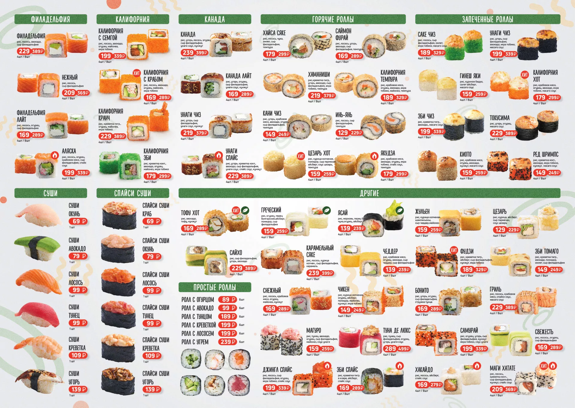 Оформление меню суши-бара «Roll Wok Club» в Льгове